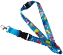 A silk lanyard that is used to carry a key around the wearer's neck. It is decorated in Groovy art work.